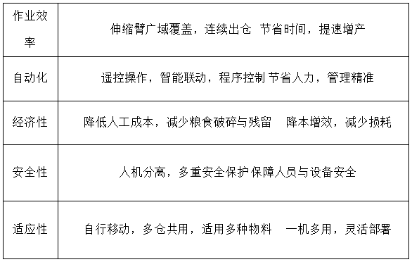 自動伸縮式出倉機簡化出倉過程,可伸縮設(shè)計減少設(shè)備挪動,加大出倉作業(yè)面積,將出倉工作從繁重,低效轉(zhuǎn)變?yōu)榭焖?,_干凈的流程。